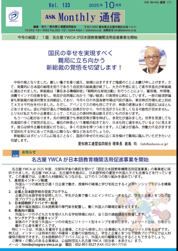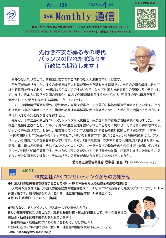 愛知商工連盟協同組合からのお知らせ