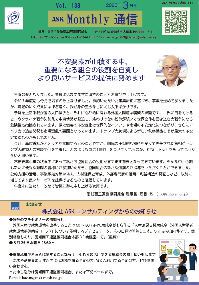 愛知商工連盟協同組合は、1973年中小企業協同組合法により